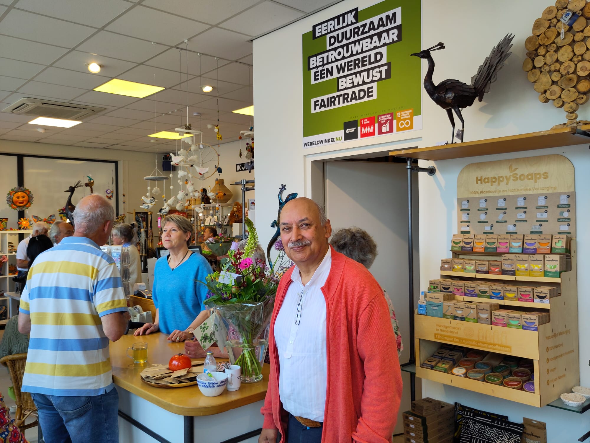foto 2: Voorzitter John van Balen van Wereldwinkel.NU is aanwezig namens het landelijk bestuur en is trots op het resultaat.